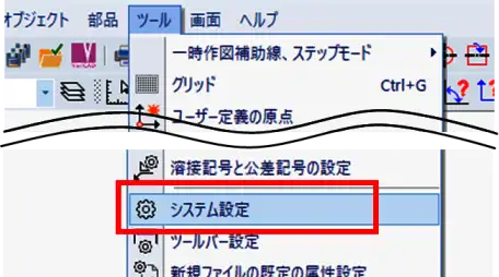 - メニューバーの「ツール」>「システム設定」をクリックで選択します。