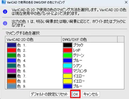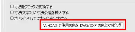- 「システム設定」ウィンドウ右下に表示される「VariCAD で使用の色をDWG/DXFの色にマッピング」をクリックします。