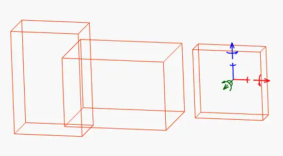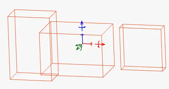 ソリッドのグループを平行移動する際に使用する、挿入ポイントの位置を変更する方法を説明します。グループ内のソリッドのいずれかの挿入ポイントがグループの挿入ポイントになります。本例では、グループの挿入ポイントの位置を真ん中のソリッドの挿入ポイントから右端のソリッドの挿入ポイントの位置へ変更します。ソリッドのグループ化は複数のソリッドをグループ化したい をご覧ください。
