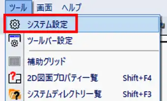 - メニューバーの「ツール」>「システム設定」をクリックで選択します。