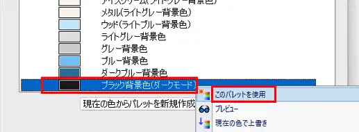 - 「システム設定」ウィンドウ右側のオプションで、「ブラック背景色(ダークモード)」をクリックで選択し、「このパレットを使用」をクリックで選択します。