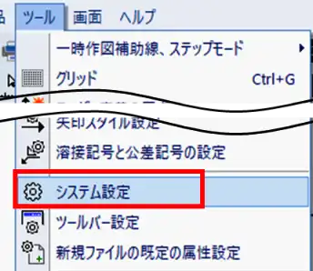 - メニューバーの「ツール」>「システム設定」をクリックで選択します。