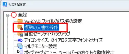 - 「システム設定」ウィンドウの左側ツリー項目から「複数の文書の操作」をクリックで選択します。