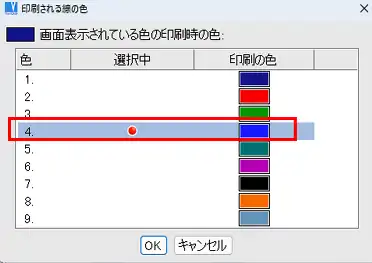 - 印刷時の色を設定したい、描画画面上のオブジェクトの色を「色」列からクリックで選択します。
