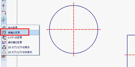 図面上の中心軸の線種を一括で変更する方法を説明します。