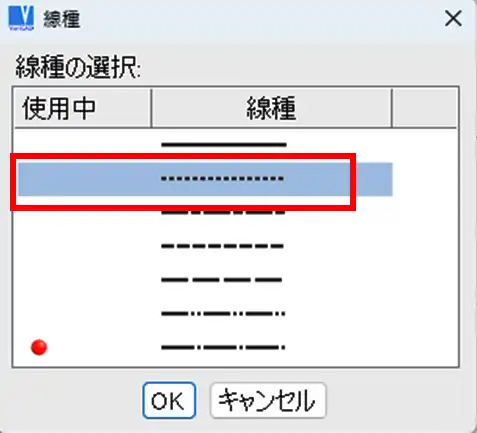 - 描画画面左横にある、「線種の変更」アイコンをクリックします。