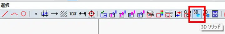 - 「選択」ツールバーで「3Dソリッド」アイコンをクリックします。