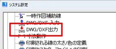 - 「システム設定」ウィンドウ左側に表示されるツリー項目から「DWG/DXF出力」をクリックで選択します。