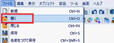 - メニューバーの「ファイル」>「開く」をクリックで選択します。
