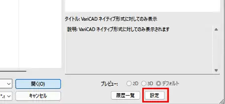 - 「開く」ウィンドウで、「設定」をクリックします。