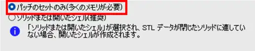 - 「設定」ウィンドウ右側にある「パッチのセットのみ」または、「ソリッドまたは開いたシェル」をクリックで選択します。この例では、「ソリッドまたは開いたシェル」を選択します。