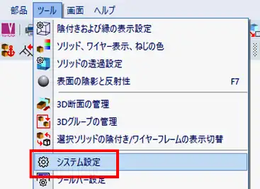 - メニューバーの「ツール」>「システム設定」をクリックで選択します。