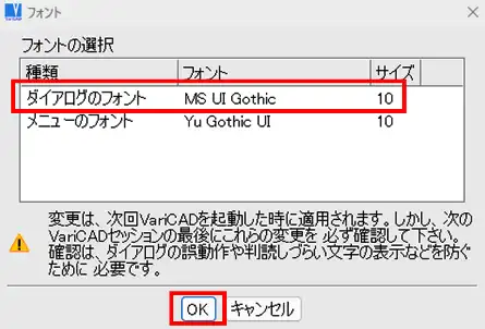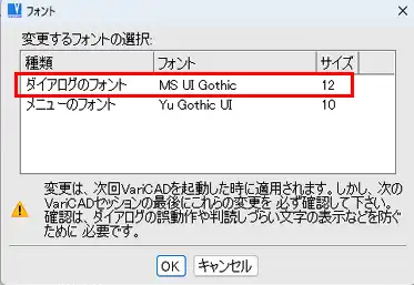- 「フォント」ウィンドウで、「ダイアログのフォント」をクリックで選択します。