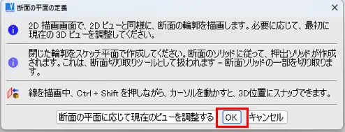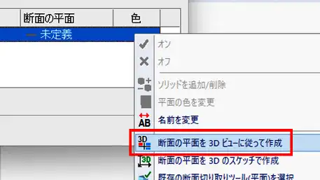 - 「断面の平面を3Dビューに従って作成」をクリックで選択します。