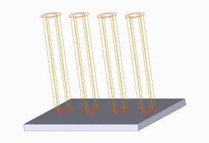 - 選択窓を使用して、4つのパイプソリッドを選択します。