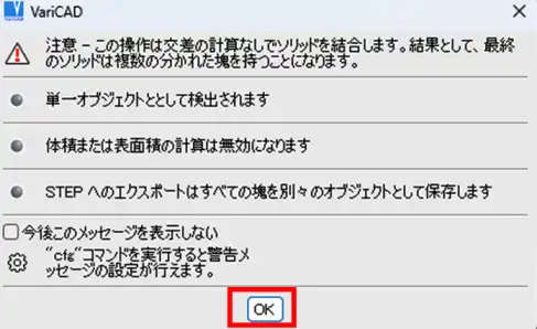 - 複数のソリッドが交差計算なしで一括で結合されました。