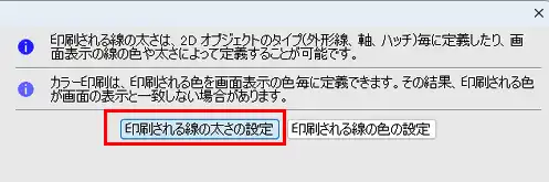- ウィンドウ右側に表示される、「印刷される線の太さの設定」をクリックします。